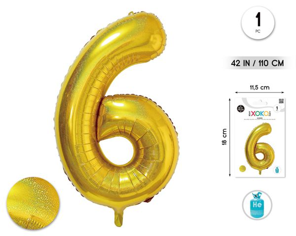 Globo Número 6 Oro 110 cm