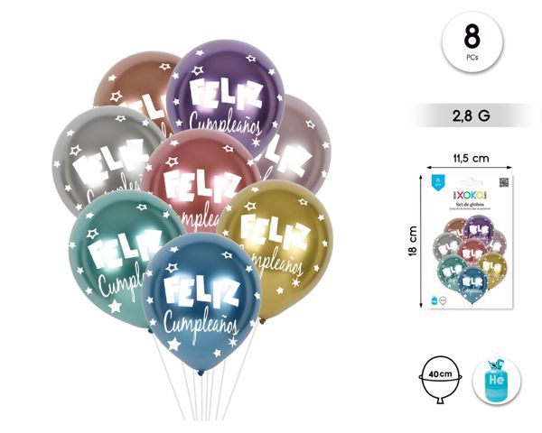 Globos Feliz Cumpleaños 40 cm Metalizados 8 unidades
